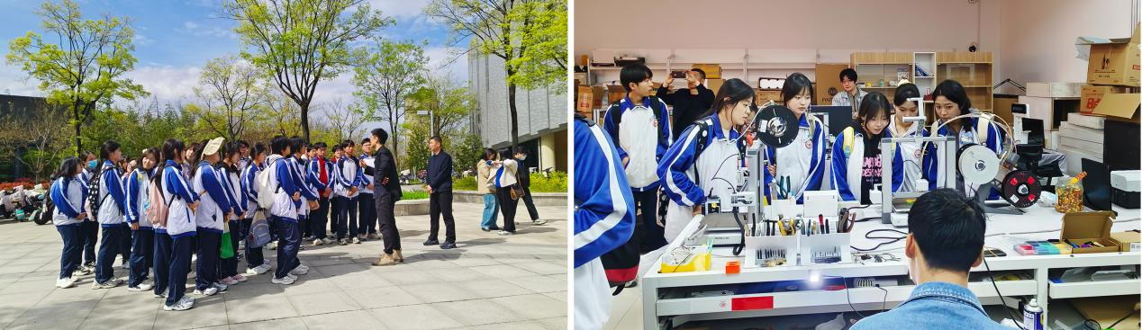 来访师生先后参观了产品工艺实验室、视觉品牌设计实验室、空间设计实践工作室及AI创新设计中心等教学科研平台,实地观摩实践教学成果,深入了解专业设备配置与实训流程。参观过程中,同学们认真聆听讲解,积极提问交流,现场学习氛围浓厚。