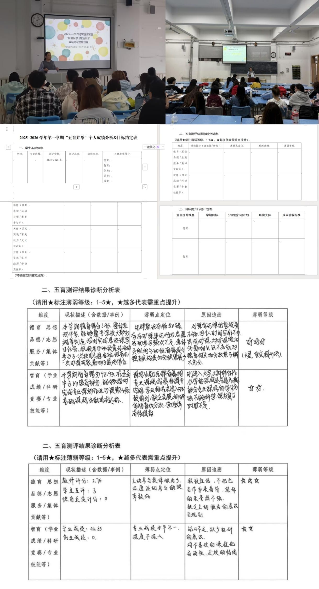 班会结束后,同学们纷纷表示,这种“诊断—计划—约定”的模式让个人发展目标更加清晰,也增强了落实行动的内在动力。此次主题班会是学院在学风建设与学生发展指导方面的一次创新实践。通过将综合测评与五育发展深度融合,以个性化诊断和契约式成长推动学生从“被动评价”转向“主动规划”,进一步营造了对标先进、自觉成长的良好氛围。学院将持续关注学生发展需求,完善支持体系,助力每一位学子在成长道路上走得更加坚实、更有方向。